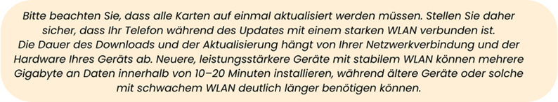 Überprüfen Sie die Updates, indem Sie in der App auf Menü → Offline-Karten gehen.