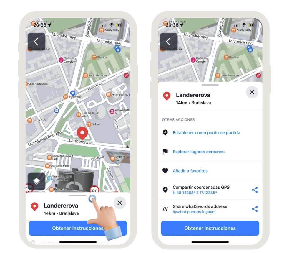 - Captura de pantalla de la ubicación con coordenadas GPS visibles