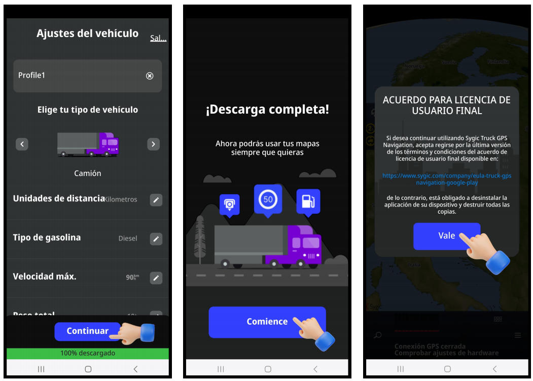 Después de una exitosa instalación de Sygic GPS Truck & Caravan Navigation, la aplicación está lista para el primer lanzamiento: